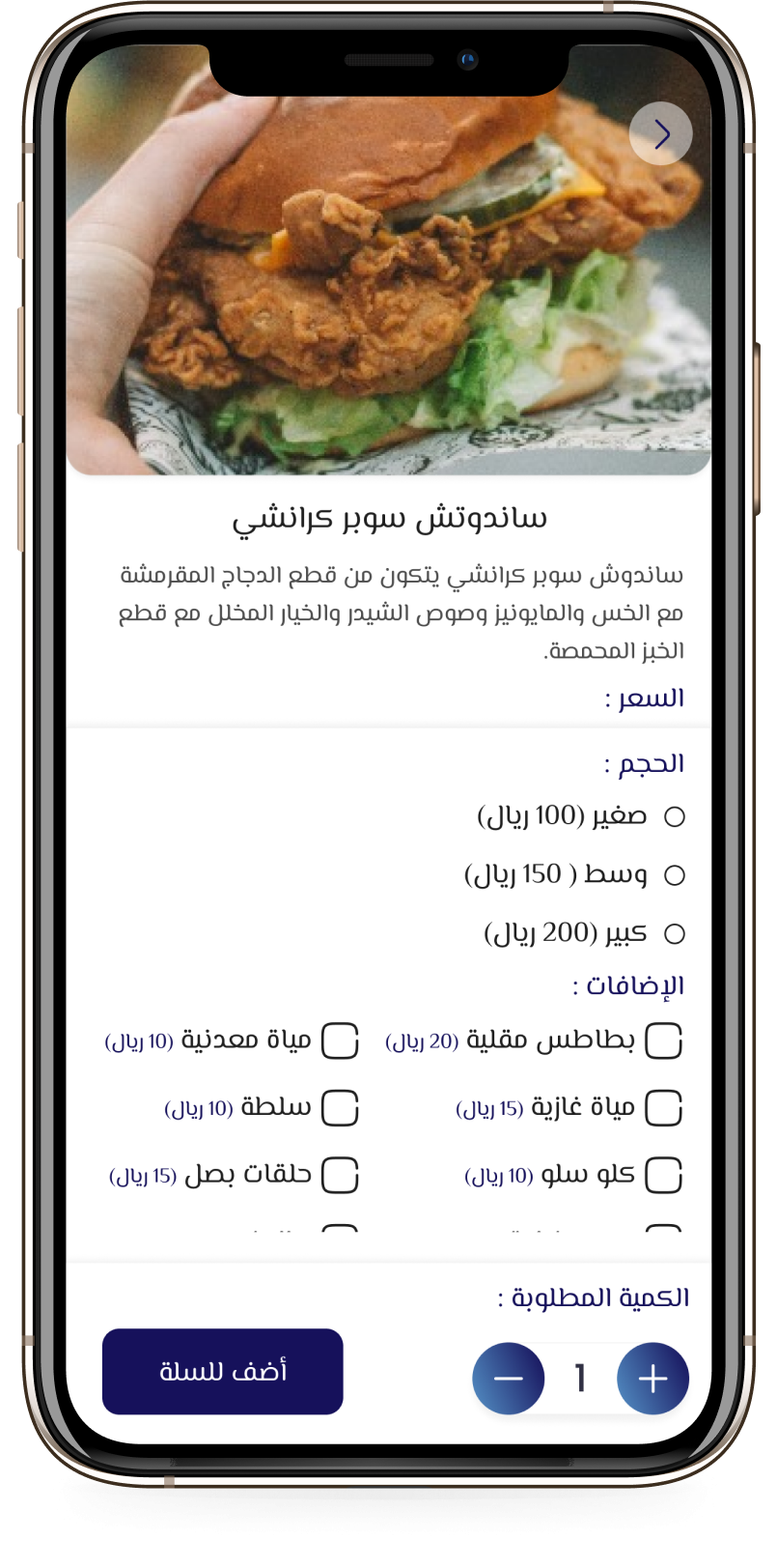 عند اختيار منتج مثلا من مطعم تظهر مواصفاته كالحجم والاضافات ويمكنك تتبع طلبك فيما بعد